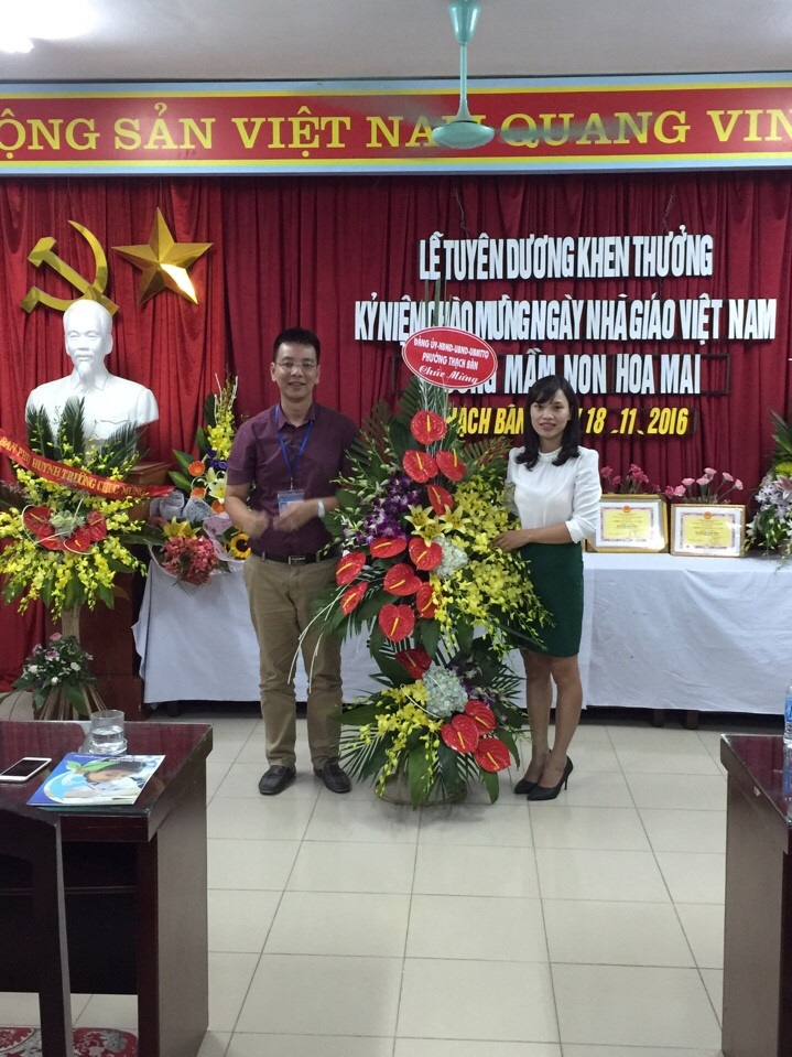 Cô giáo Trần Thị Nghĩa Quỳnh– Bí thư Chi bộ - Hiệu trưởng Nhà trường chân thành cảm ơn sự có mặt và chung vui của quý vị đại biểu, các thầy cô giáo và trao thưởng cho các cá nhân tập thể đạt thành tích cao.
