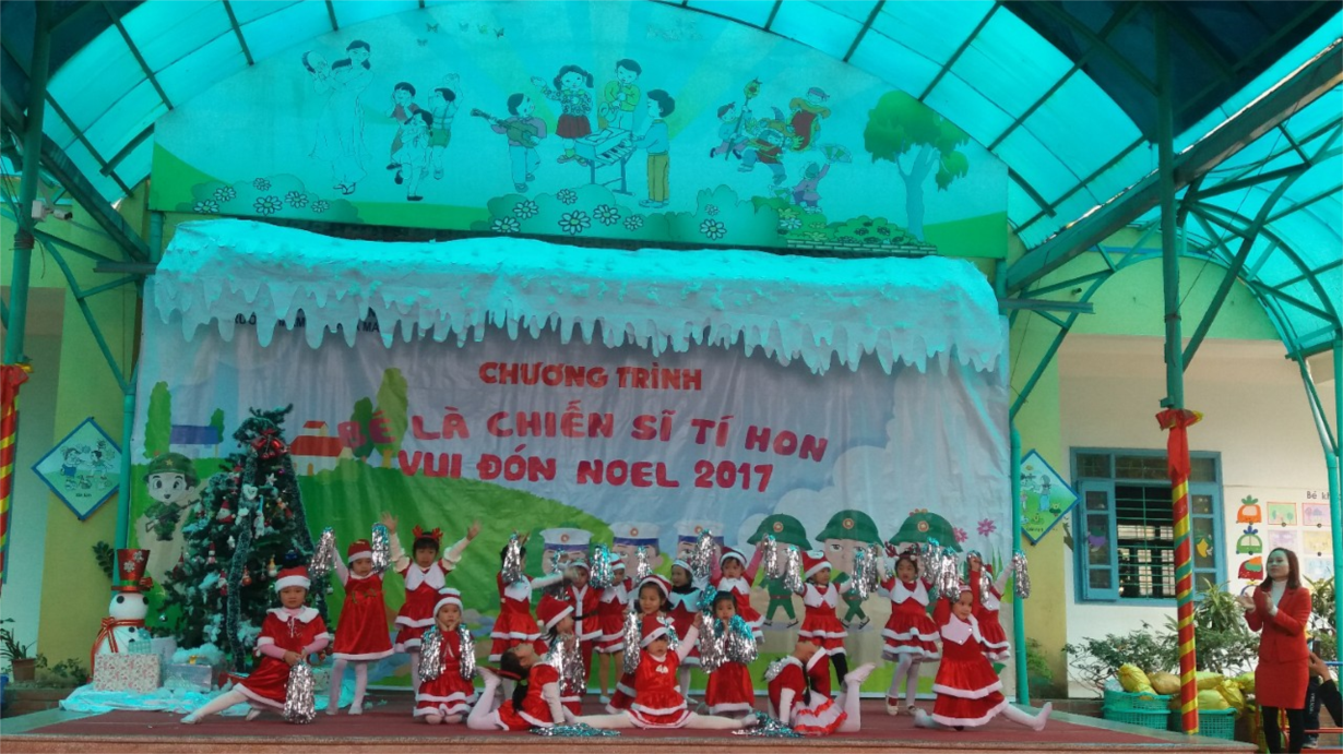 Sau phần Bé là chiến sĩ tí hon của khối mẫu giáo lớn là phần giao lưu tiếng Anh- Chương trình Noel của học sinh toàn trường.