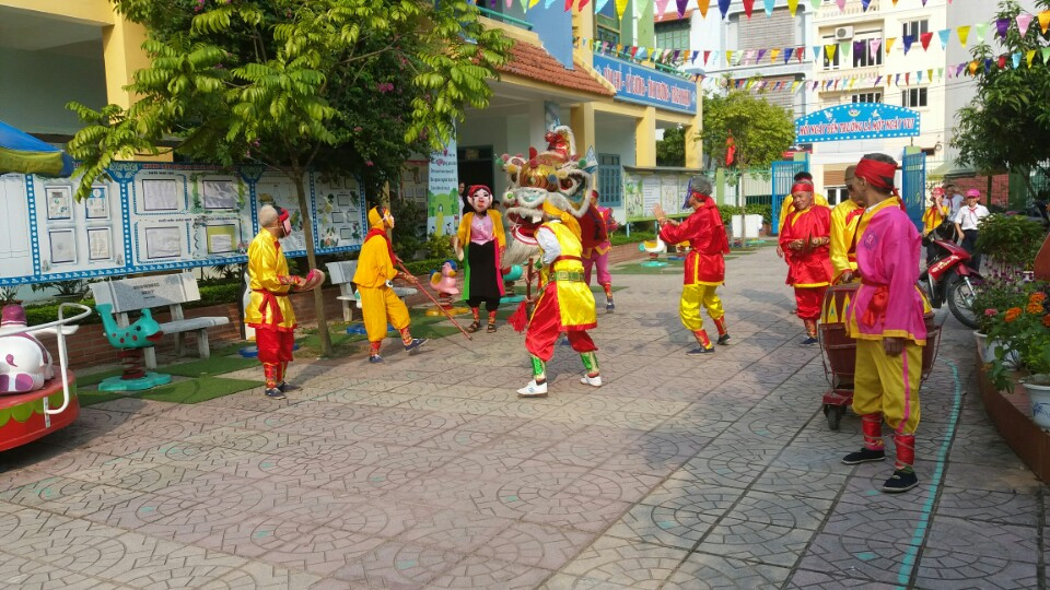 Phần đón chào Tết Trung thu, được mở đầu bằng tiết mục thi thuyết trình và bày mâm ngũ quả giữa các lớp.Mỗi lớp mang một phong các riêng nhưng tựu trung lại tất cả đều hướng về trẻ, dành cho trẻ những tình cảm những lời yêu thương nhất. Tiếp theo là tiết mục mùa lân do đội múa lân của Phường thực hiện. Những động tác lắc lư đầu lân, hay cái quạt phe phẩy của hai ông địa theo nhịp trống trông thật ngộ nghĩnh đáng yêu đã tạo cho các con sự hào hứng, phấn khởi trong ngày hội.