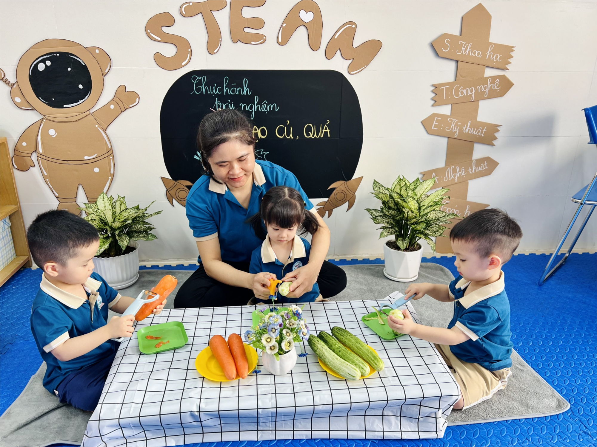 - Hoạt động trải nghiệm: "Bé nạo củ, quả" đã đem đến cho các bạn lớp nhà trẻ D2 nhiều điều thích thú và mới lạ. Trong hoạt động này các bé đã biết một số loại củ, quả có thể sử dụng nạo để gọt vỏ . Dưới sự hướng dẫn của cô, những đôi bàn tay nhỏ xinh đã nạo được những củ cà rốt và dua chuột thật khéo léo đấy. Chúng mình tin rằng một ngày không xa các bé có thể giúp đỡ ba mẹ nạo củ, quá đấy nhé