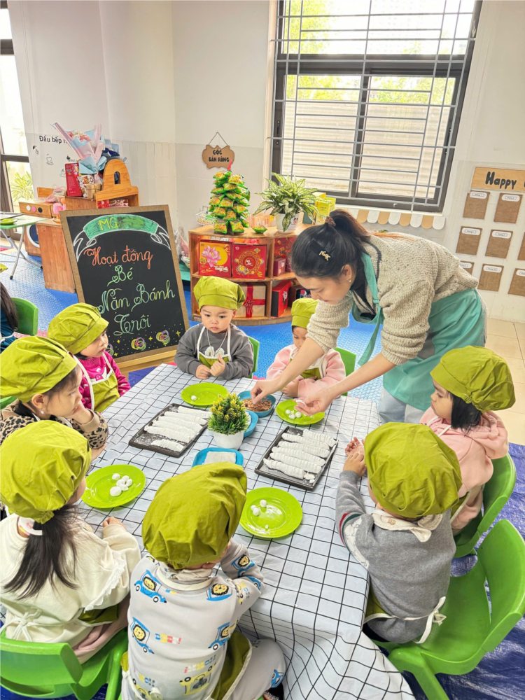 Những viên bánh tròn xinh xắn được nặn từ những đôi bàn tay đáng yêu của của các bé lớp MGB C2, được bé nâng niu và trân trọng biết bao vì đó chính là thành quả lao động miệt mài của các bé. Thông qua hoạt động này, các bé không chỉ được vui chơi mà còn hiểu hơn về nguồn gốc, ý nghĩa của ngày lễ đặc biệt này. Những kỷ niệm ngọt ngào hôm nay sẽ trở thành ký ức đẹp trong tuổi thơ của các bé