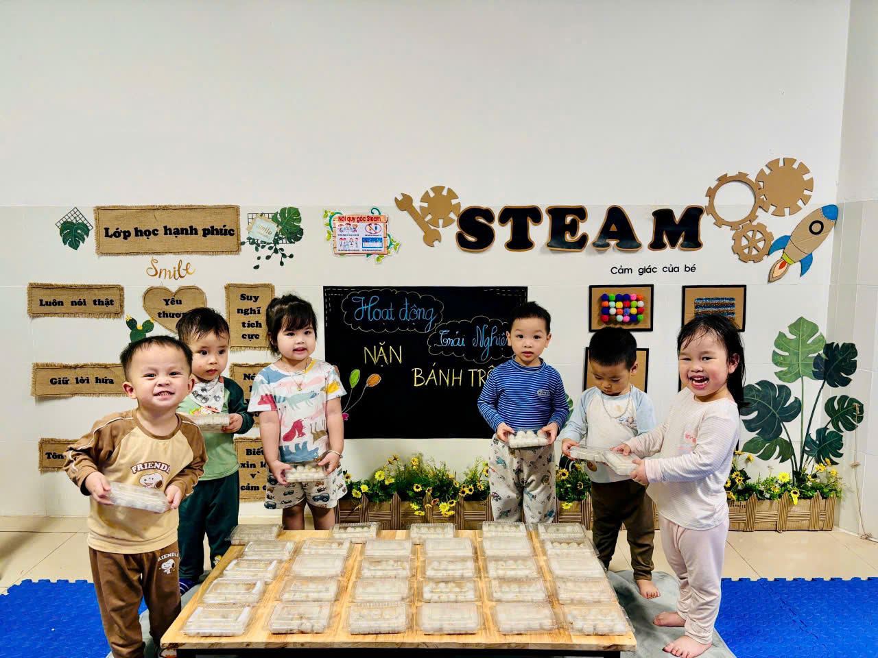 Dưới sự hướng dẫn của cô và đôi bàn tay khéo léo, nhỏ nhắn đáng yêu của các bé lớp Nhà trẻ D1 đã nặn ra những viên bánh tròn xinh xắn. Thông qua hoạt động này, các bé không chỉ được vui chơi, biết được những nguyên liệu và quy trình chế biến mà còn hiểu hơn về nguồn gốc, ý nghĩa của ngày lễ đặc biệt này. Những kỷ niệm ngọt ngào hôm nay sẽ trở thành ký ức đẹp trong tuổi thơ của các bé