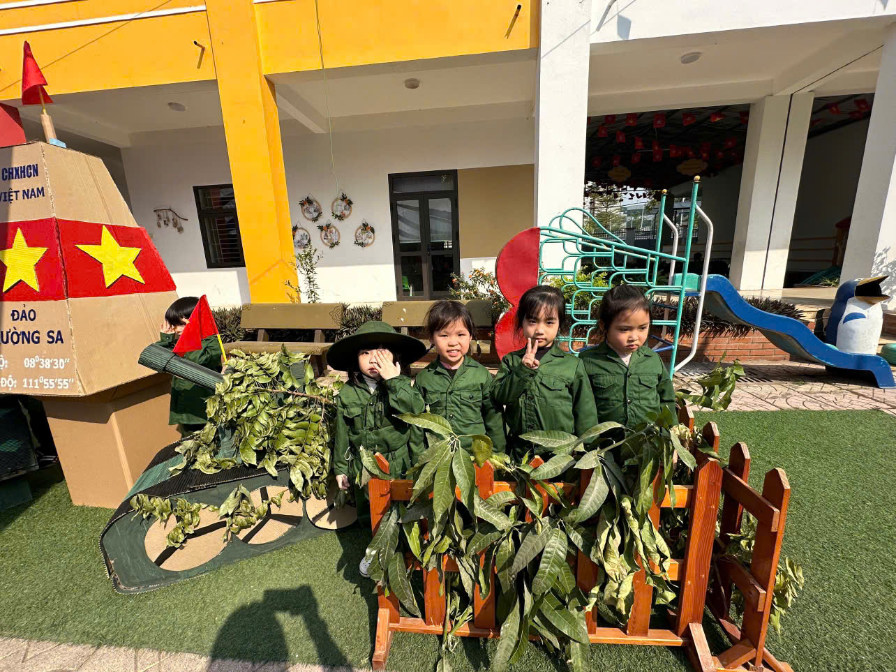 Hôm nay là một ngày đặc biệt và đầy tự hào! Hòa chung không khí kỷ niệm 80 năm ngày thành lập Quân đội Nhân dân Việt Nam (22/12/1944 - 22/12/2024), 35 năm Ngày hội Quốc Phòng toàn dân (22/12/1989 - 22/12/2024) các bé lớp MGN B1 đã được tham gia chương trình “Chiến sĩ tý hon” Đây là dịp để các bé được trải nghiệm, phát triển thể lực trẻ khỏe mạnh; rèn luyện tư thế vận động cơ bản, phát triển các tố chất nhanh nhẹn, khéo léo, mềm dẻo của một người lính cụ Hồ Qua các hoạt động này, các em sẽ hiểu thêm về sự vất vả và lòng dũng cảm của các chiến sĩ bảo vệ đất nước. Đồng thời giúp các bé có những kiến thức, kĩ năng, hiểu biết về các chú bộ đội, hun đúc tình yêu lòng biết ơn và ước mơ trở thành các cô chú bộ đội