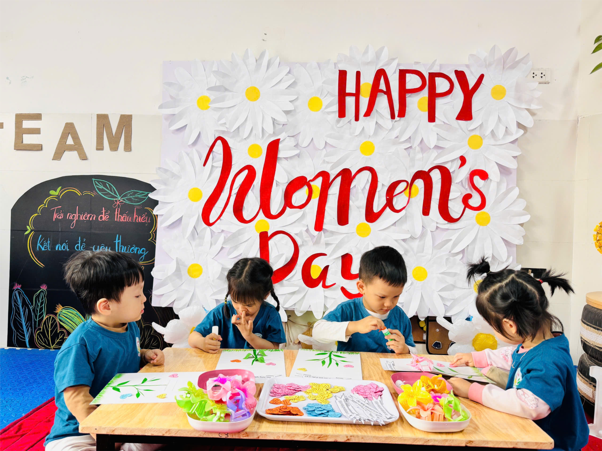 Hưởng ứng Ngày Quốc tế Phụ nữ 8/3, các bé lớp MGB C3 đã được cùng cô và các bạn tham gia nhiều hoạt động ý nghĩa như làm thiệp tặng bà, mẹ và cô giáo và vui liên hoan. Những sản phẩm nhỏ xinh thể hiện tình cảm ngây thơ, chân thành của các con dành cho những người phụ nữ thân yêu.