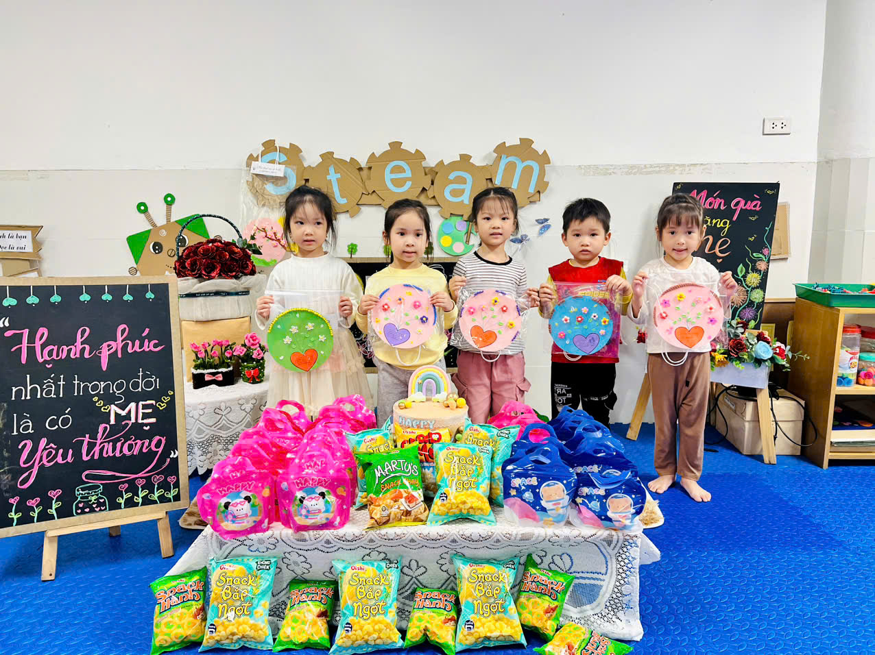Nhân dịp Ngày Quốc tế phụ nữ 8/3, lớp MGB B1 tràn ngập không khí vui tươi và ấm áp. Các bé được cô giáo giới thiệu về ý nghĩa của ngày 8/3 và cùng tham gia hoạt động làm thiệp hoa tặng bà và mẹ. Những đôi bàn tay nhỏ xinh đã tạo nên những món quà giản dị nhưng đầy tình cảm. Mỗi sản phẩm là một lời chúc đáng yêu mà các bé muốn gửi đến người thân. Hoạt động không chỉ mang lại niềm vui cho trẻ mà còn giúp các con biết yêu thương và trân trọng những người phụ nữ trong cuộc sống.