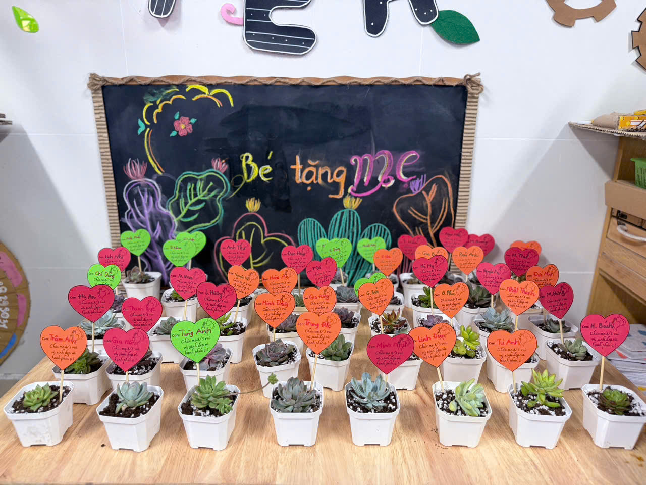Nhân dịp Ngày Quốc tế Phụ nữ 8/3, các bé lớp MGL A3 đã tham gia hoạt động trải nghiệm trồng cây sen đá tặng mẹ. Dưới sự hướng dẫn của cô giáo, các bé tự tay cho đất vào chậu, nhẹ nhàng đặt cây sen đá và trang trí chậu cây thật xinh xắn. Dù còn nhỏ nhưng các con rất chăm chú và hào hứng khi hoàn thành “món quà xanh” của mình. Những chậu sen đá nhỏ xinh không chỉ là món quà đáng yêu mà còn chứa đựng tình cảm ngây thơ của các bé dành tặng mẹ. Hoạt động giúp trẻ rèn luyện sự khéo léo, đồng thời giáo dục các con biết yêu thương và quan tâm đến mẹ của mình.