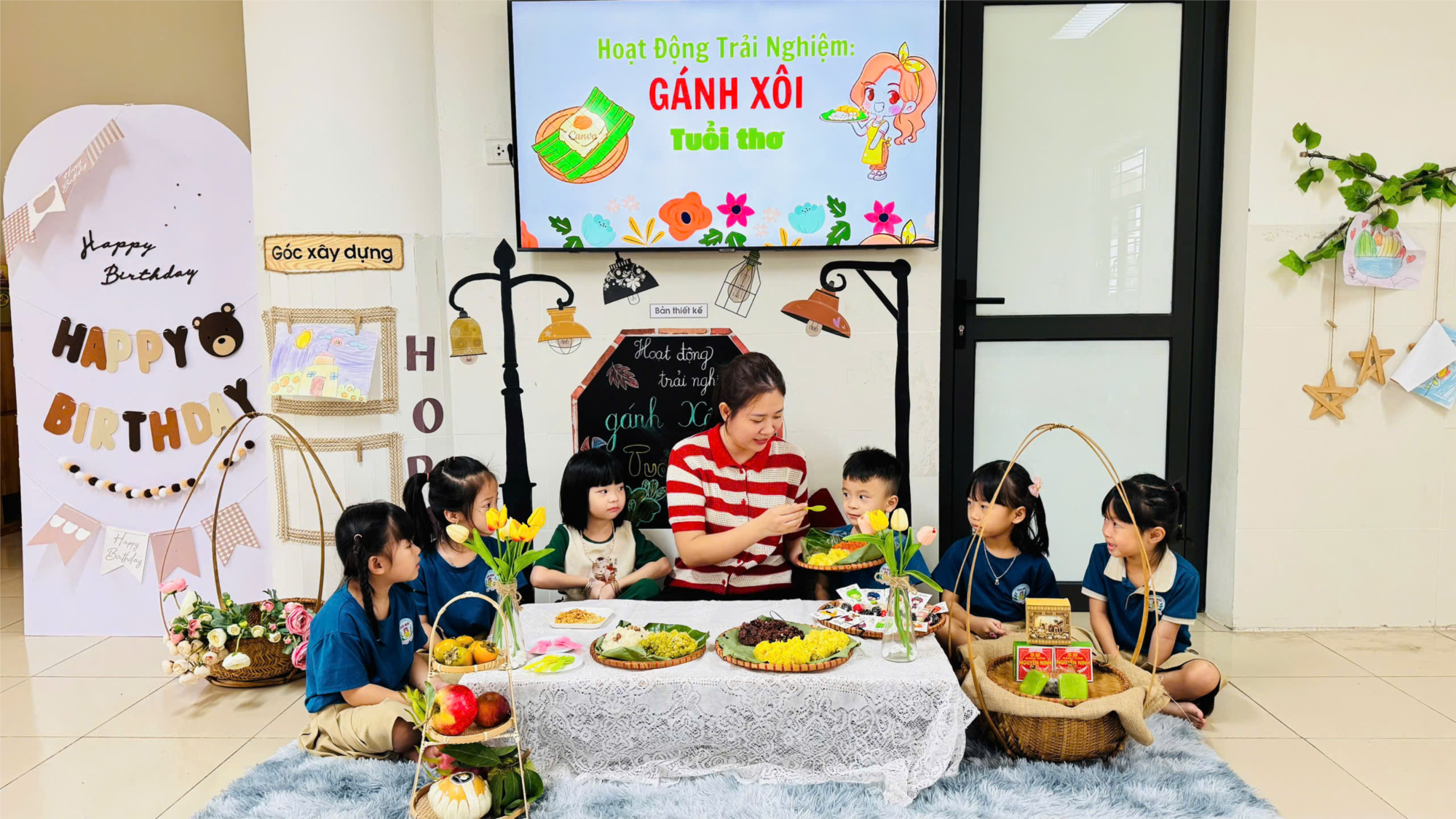 Hôm nay, các bé lớp Mẫu giáo lớn A1 đã có một buổi trải nghiệm thật thú vị với hoạt động “Gánh xôi tuổi thơ”. Trong không gian ấm áp, cô giáo đã chuẩn bị nhiều loại xôi thơm ngon như xôi gấc, xôi cốm, xôi đậu xanh… để các bé cùng thưởng thức. Bé nào cũng thích thú khi được quan sát màu sắc rực rỡ của những đĩa xôi và cảm nhận hương thơm dịu nhẹ lan tỏa khắp lớp. Các con vừa ăn vừa trò chuyện rộn ràng, chia sẻ với bạn về món xôi mình yêu thích nhất. Qua hoạt động này, trẻ không chỉ được mở rộng hiểu biết về các món ăn truyền thống của quê hương mà còn học cách trân trọng giá trị lao động, biết giữ gìn nét đẹp văn hóa ẩm thực Việt Nam. Buổi trải nghiệm khép lại trong niềm vui và tiếng cười giòn tan của các bé.