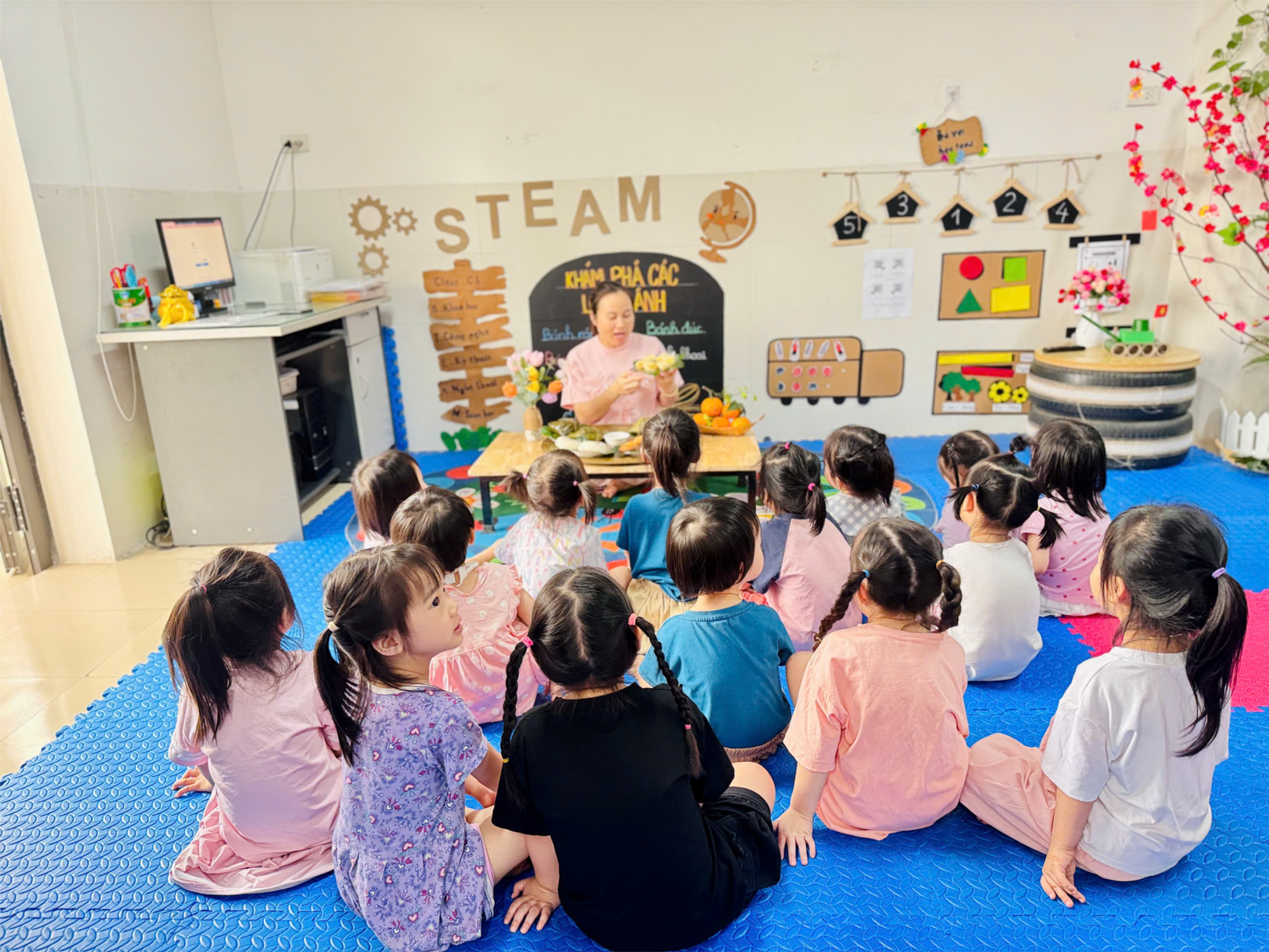 Hoạt động “Khám phá một số loại bánh quê” của các bạn nhỏ lớp MGB C3 giúp các bạn nhỏ không chỉ làm quen với các món bánh quen thuộc như bánh rán, bánh đúc, bánh khoai, bánh tẻ mà các bạn còn được quan sát, ngửi mùi, thưởng thức, gọi tên và tìm hiểu nguyên liệu làm bánh. Thông qua hoạt động, các bạn nhỏ đã được biết thêm về ẩm thực truyền thống, rèn luyện khả năng quan sát, giao tiếp và mạnh dạn bày tỏ cảm nhận. Hoạt động còn giúp các bạn hiểu giá trị của lao động và thêm yêu nét đẹp văn hóa quê hương.