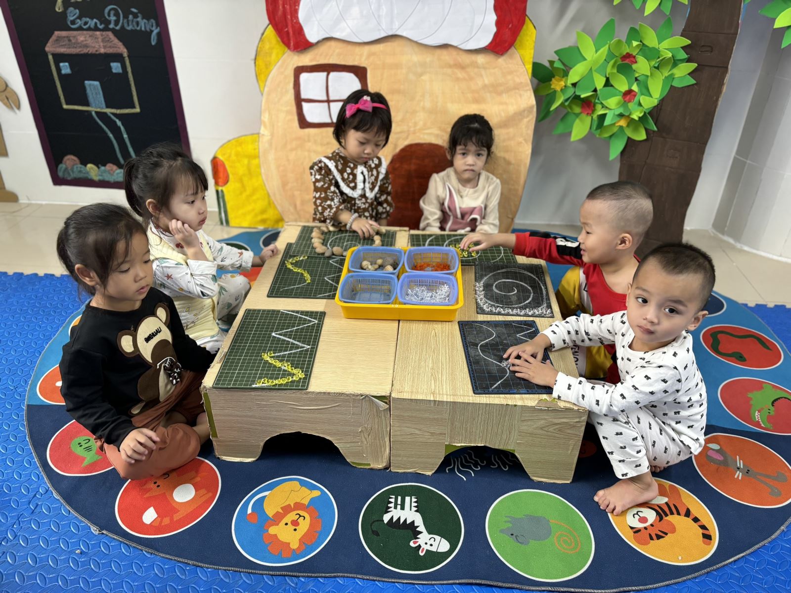 Giúp trẻ có thể rèn luyện các cử động của bàn tay, ngón tay và phối hợp tay mắt một cách khéo léo. Hôm nay cô trò lớp MGB C1 đã có buổi hoạt động "Xếp theo đường có sẵn" rất vui nhộn. Ở hoạt động này trẻ có thể thuần thục các kỹ năng vận động tinh ở các cơ bàn tay và cổ tay cũng như học cách điều khiển chúng một cách chính xác. Từ những nguyên liệu có sẵn trong thiên nhiên và bằng sự khéo của đôi bàn tay các bạn nhỏ C1 đã xếp được các đường cong, đường zic zắc vô cùng phúc tạp đấy. Dưới đây là một số hình ảnh của buổi hoạt động.