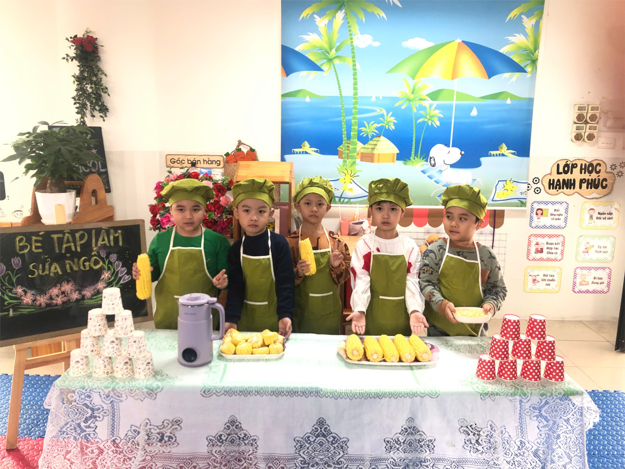 Hôm nay các bé lớp MGL A2 đã có buổi hoạt động “bé làm sữa ngô” đầy thú vị. Không chỉ mang lại niềm vui mà còn giúp các bé khám phá quy trình làm ra món uống thơm ngon từ hạt ngô. Qua việc tham gia các bước như tách hạt, xay ngô và lọc nước, các bé được rèn luyện sự khéo léo, kiên nhẫn và học cách phối hợp cùng bạn bè để hoàn thành các công đoạn làm sữa. Đây cũng là dịp để các con hiểu thêm về giá trị dinh dưỡng của thực phẩm, từ đó hình thành thói quen ăn uống lành mạnh. Thành phẩm là ly sữa ngô. Còn vì thú vị hơn khi được tự tay và thưởng thước loại thức uống đầy chất dinh dưỡng này phải không ạ!