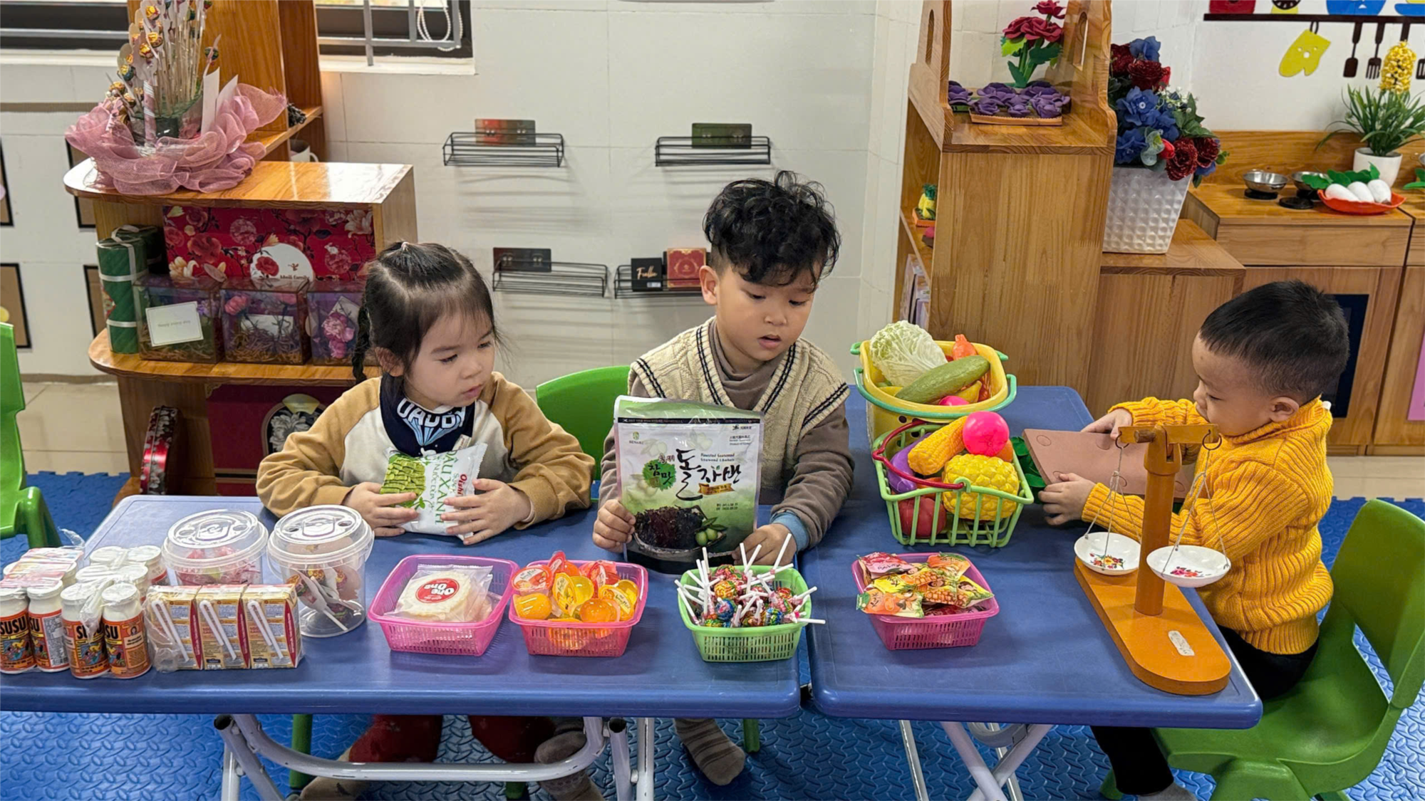 Hoạt động góc là không gian kỳ diệu, nơi các bạn nhỏ được khám phá, trải nghiệm và phát triển toàn diện thông qua các hoạt động chơi mà học. Chúng ta hã cùng đến với “Hoạt động góc” của các bé lớp MGB C3 Hoạt động này không chỉ là nơi để các bé tự do sáng tạo, thể hiện bản thân mà còn là nơi học cách tương tác, chia sẻ với bạn bè, phát triển kỹ năng xã hội và tình cảm. Ở mỗi góc chơi như một thế giới thu nhỏ mang đến những bài học riêng biệt: góc nghệ thuật giúp trẻ bay xa trong trí tưởng tượng, góc xây dựng giúp rèn luyện tư duy logic, hay góc đóng vai giúp trẻ nhập vai và hiểu hơn về thế giới xung quanh.