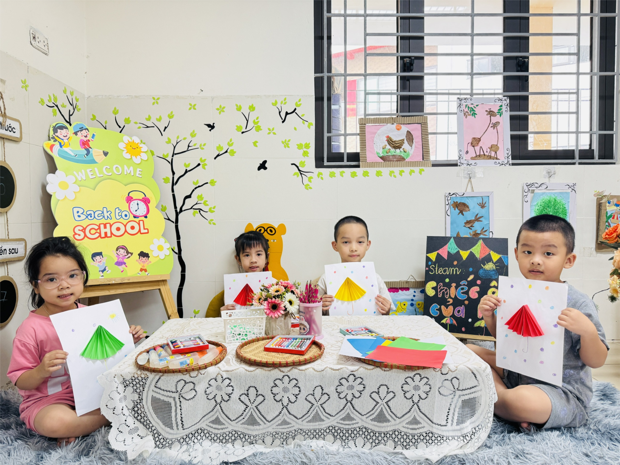 Qua hoạt động này, các bé không chỉ học được cách tạo hình từ giấy màu mà còn thêm yêu thích cái đẹp, biết trân trọng sản phẩm do chính mình làm ra.