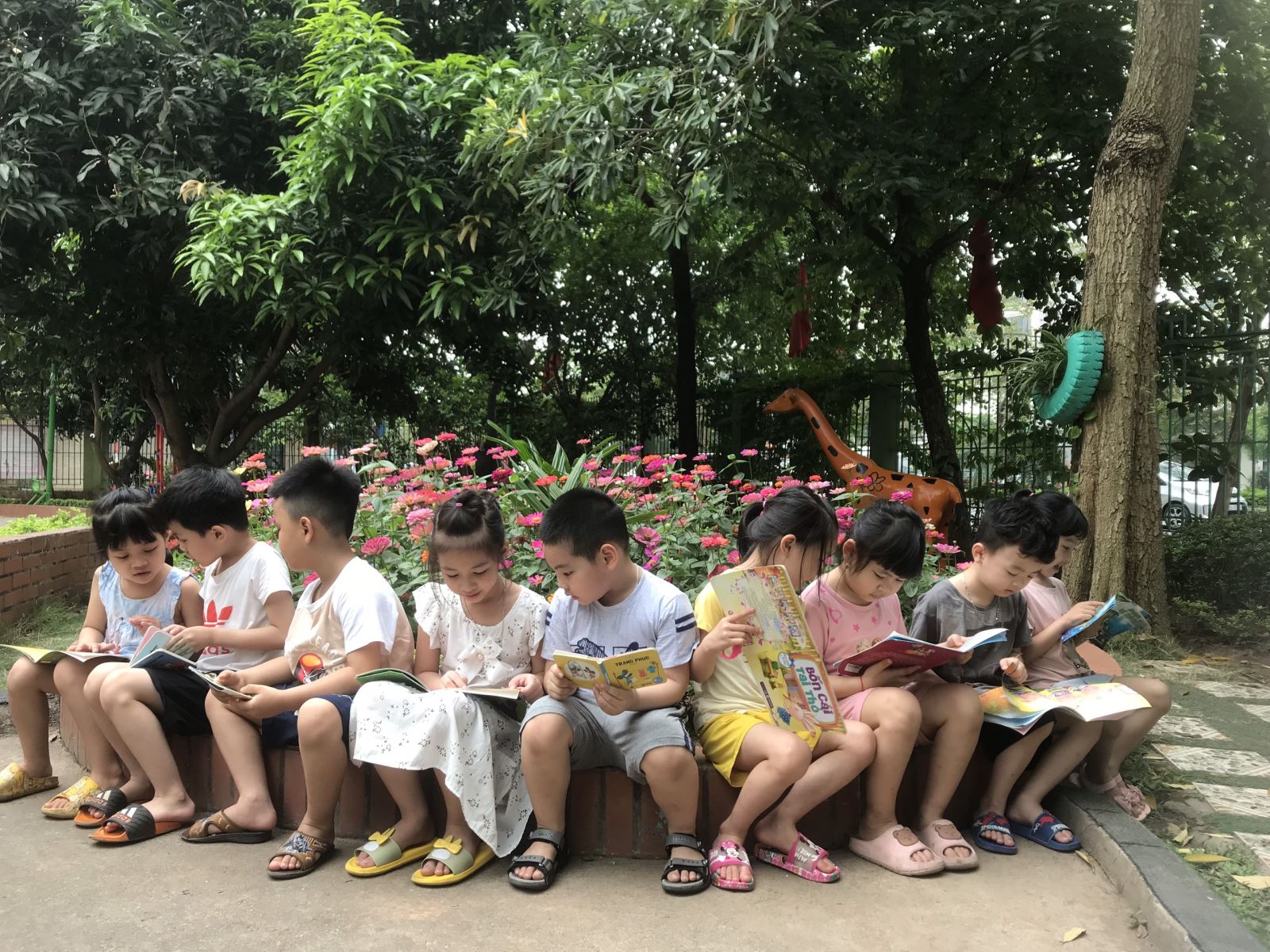 Trong ngày hội đọc sách của trường, cô trò lớp mẫu giáo lớn A4 cùng trưng bày gian hàng sách và đọc thơ kể chuyện diễn cảm với nhiều thể loại: Truyện tranh cổ tích, truyện cổ tích, thơ, sách trẻ mầm non, sách tham khảo của giáo viên, tài liệu hướng dẫn nuôi con theo khoa học, tạp chí báo giáo dục mầm non. Việc đọc sách giúp trẻ có những lợi ích như sau: