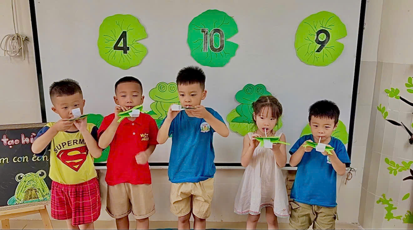 Sáng hôm nay, các bé lớp MGL A3 đã tham gia hoạt động nghệ thuật vô cùng sáng tạo và thú vị mang tên "Tạo hình con ếch". Với đôi bàn tay khéo léo và dưới sự hướng dẫn của cô các bé không những đã tạo ra những con ếch đáng yêu, ngộ nghĩnh mà còn có thể vui đùa với những sản phẩm của mình. Thông qua hoạt động này không chỉ giúp các bé phát triển tư duy thẩm mỹ mà còn mang lại những giây phút thư giãn, vui vẻ. Hơn thế nữa, qua việc tạo hình những con vật quen thuộc, các bé sẽ dễ dàng gắn kết hơn với thế giới tự nhiên xung quanh.
