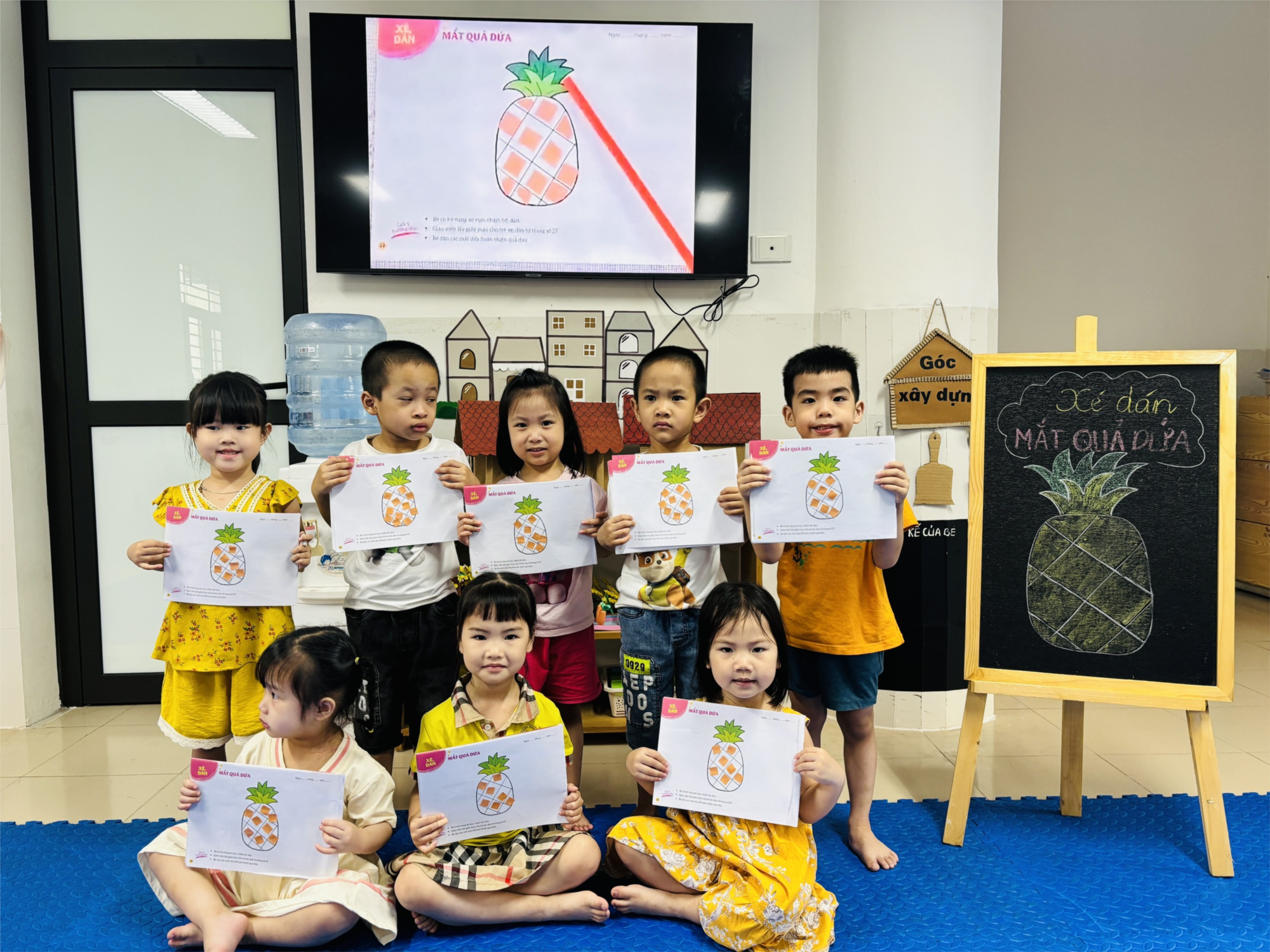 Hoạt động tạo hình luôn đem lại cho các bạn lớp MGB C1 sự cuốn hút lạ kỳ. Bởi ở hoạt động này các bạn không chỉ thoả sức sáng tạo mà còn thể hiện được sự khéo léo của đôi bàn tay. Với chủ đề thực vật: Tạo hình "Xé dán mắt quả dứa" các bạn lớp C1 đã tạo ra những bức tranh quả dứa thật đẹp đấy. Chúng mình cùng tham gia hoạt động với các bạn ý nào