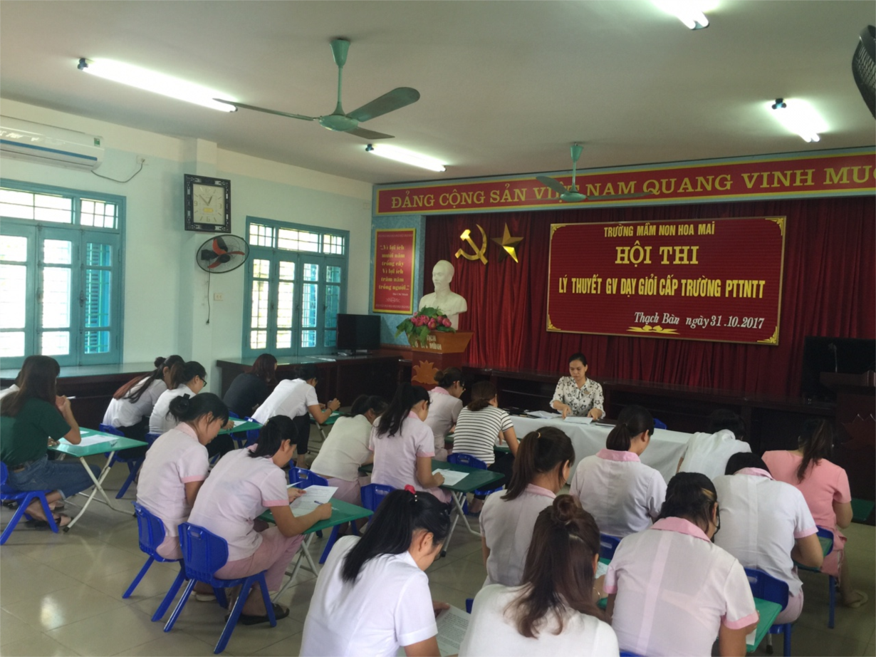 Hội thi lần này có 100% giáo viên tham gia với 10 câu hỏi trắc nghiệm kiểm tra kiến thức, năng lực giáo viên, trong thời gian 30 phút. Nội dung kiểm tra kiến thức là các văn bản chỉ đạo của cấp trên về nhiệm vụ năm học, quy chế chuyên môn, chương trình GDMN, chuẩn nghề nghiệp giáo viên mầm non, các kiến thức về chăm sóc- giáo dục trẻ ở trường mầm non, phòng tránh tai nạn thương tích cho trẻ trong trường mầm non… Hội thi diễn ra nghiêm túc và phát huy được hiệu quả giúp giáo viên trau dồi kiến thức chuyên môn góp phần nâng cao chất lượng chăm sóc- giáo dục trẻ trong trường mầm non.