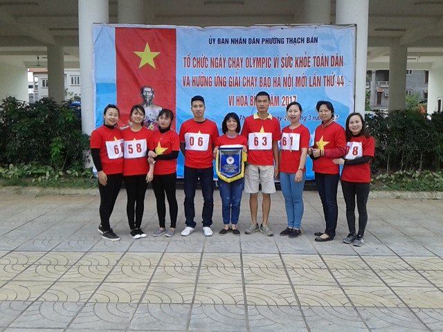 đơn vị trong phường Thạch Bàn tham gia chạy hưởng ứng. Các đ/c lãnh đạo đảng ủy- UBND- MTTQ phường Thạch Bàn đã tới dự.