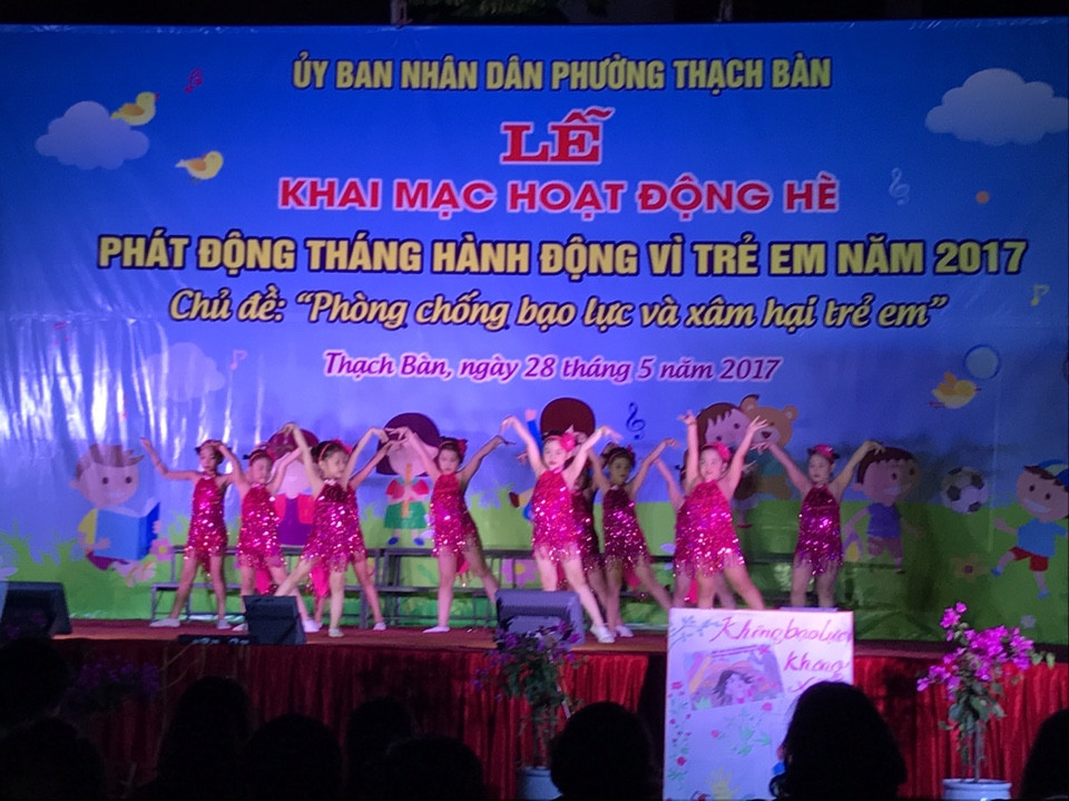 Các bé trường mầm non Hoa Mai vinh dự biểu diễn tiết mục mở màn cho khai mạc hè - Phát động tháng hành động vì trẻ em năm 2017.