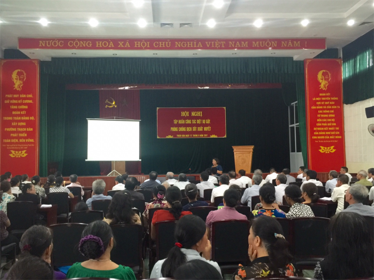 Tại buổi tập huấn, các bác, các đồng chí đã nghe đồng chí Lương Thị Minh Nguyệt- Trưởng phòng Y tế quận Long Biên cập nhật các thông tin liên quan đến tình hình dịch sốt xuất huyết trên địa bàn; truyền đạt những nội dung cơ bản về đặc điểm chủ yếu của bệnh sốt xuất huyết, khái niệm ổ dịch sốt xuất huyết Dengue, cách giám sát và phòng chống dịch, cách điều tra và đánh giá bệnh nhân sốt xuất huyết Dengue,... Hội nghị cũng phổ biến các văn bản chỉ đạo của thành phố, quận, phường về phòng chống sốt xuất huyết