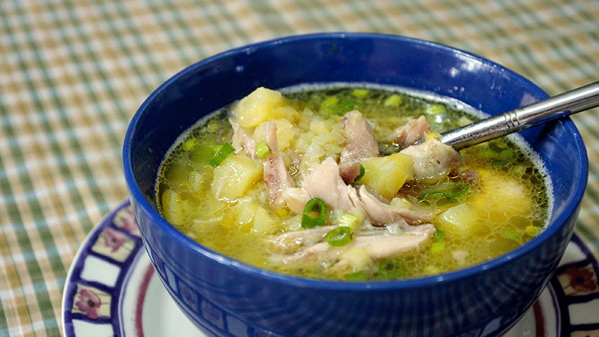 Món canh này Thịt gà, tỏi tây và khoai tây Súp
