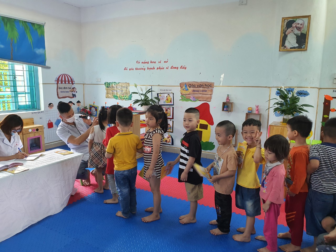 Sau đây là một số hình ảnh khám sức khỏe định kì tại trường Mầm non Hoa Mai