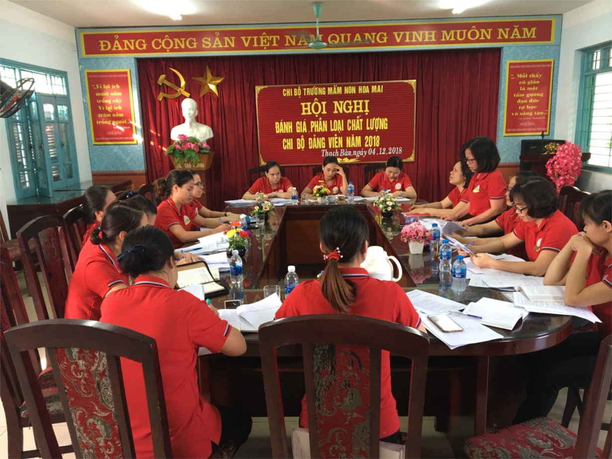 Chi bộ trường mầm non Hoa Mai tổ chức hội nghị đánh giá xếp loại chất lượng chi bộ đảng, đảng viên và tập thể, cá nhân cán bộ lãnh đạo, quản lý.