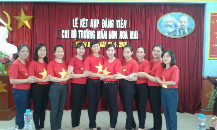 Buổi lễ kết nạp đảng viên mới của Chi bộ trường mầm non Hoa Mai thành công rực rỡ, với giai điệu Quốc ca và Quốc tế ca ngân vang như chính phẩm chất của người cộng sản , một lòng phấn đấu cho sự nghiệp vinh quang của Đảng