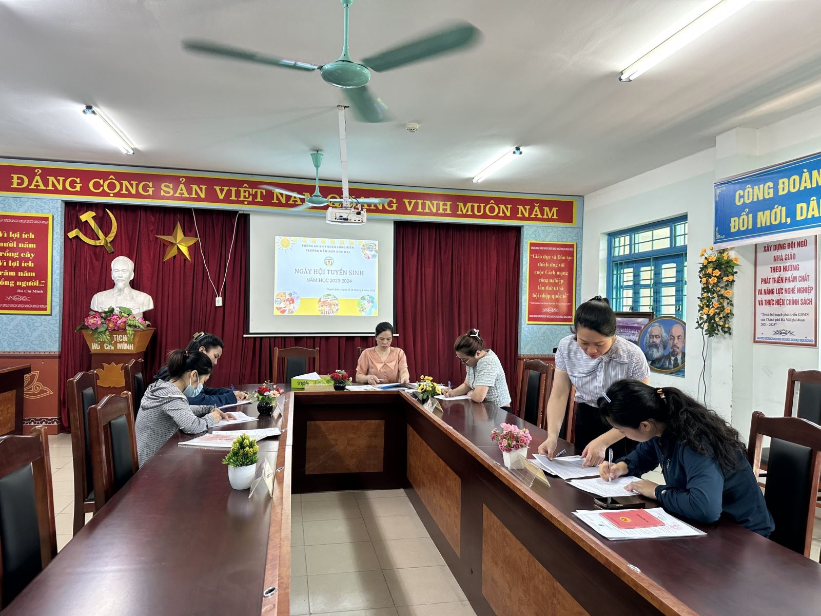 Thực hiện tốt công tác phối hợp với các tổ chức chính trị, đoàn thể tuyên truyền tới cha mẹ học sinh về công tác tuyển sinh. Phân công giáo viên, nhân viên đón tiếp, hướng dẫn phụ huynh thực hiện tuyển sinh thuận lợi.