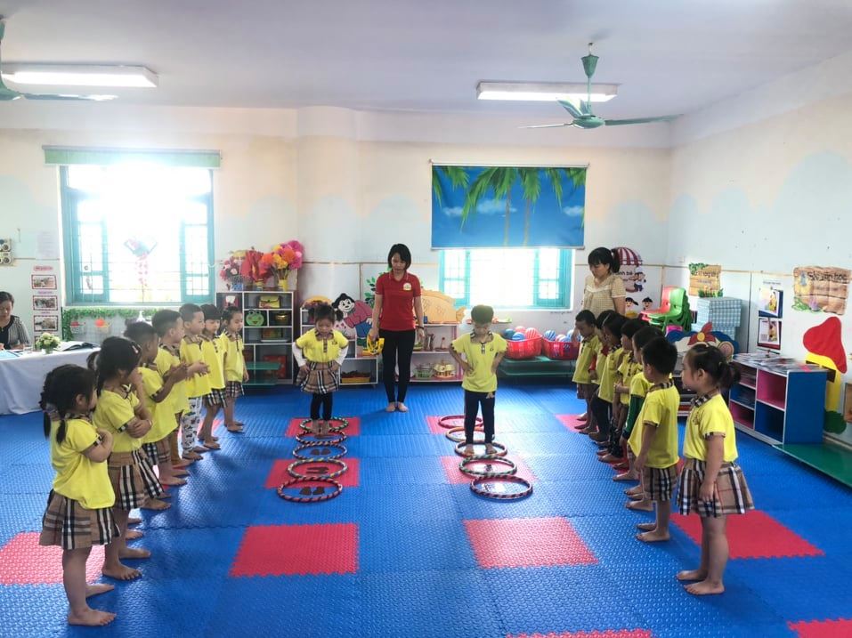 Với mục đích rèn cho các con lớp mẫu giáo nhỡ kỹ năng bật liên tục qua 5 vòng không dẫm vào vòng khi bật, lớp MGN B3 đã tổ chức một giờ học thể chất bổ ích để qua đó phát triển tổ chất nhanh nhẹn, khéo léo cho các con. Giờ học đã mang đến cho các con kỹ năng bật chụm chân khéo léo qua các vòng đồng thời giúp các con mạnh dạn, tự tin hơn trong hoạt động và phát triển thể chất cho các con.