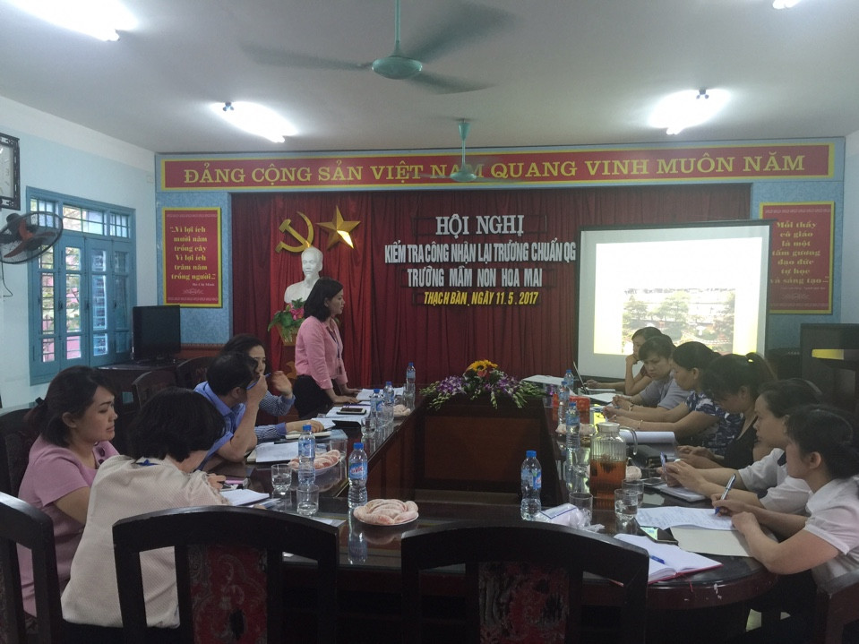 Căn cứ vào 5 tiêu chuẩn trường mầm non đạt chuẩn quốc gia mức độ 1, Đoàn đã tiến hành kiểm tra và đánh giá về từng tiêu chuẩn. Đối chiếu với các tiêu chuẩn trường mầm non đạt Chuẩn Quốc gia theo Thông tư số 02/2014/TT-BGDĐT ngày 08/02/2014 của Bộ trưởng Bộ Giáo dục và Đào tạo ban hành, trường mầm non Hoa Mai đã đạt 5 tiêu chuẩn trường mầm non đạt chuẩn Quốc Gia mức độ 1.
