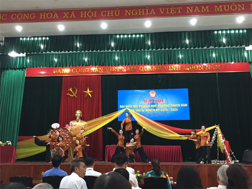 tVới các tiết mục văn nghệ sắc do các cô giáo và các em học sinh biểu diễn đã mang đến đại hội một không khí tươi vui, ý nghĩa cho Đại hội khuyến học. Các cô giáo Trường mầm non Hoa Mai biểu diễn màn múa độc đáo và ấn tượng, đưa mỗi người chúng ta trở về làng quê được đi hái dâu, phơi kén, dệt lụa.... Tác phẩm múa mang tên “Hồn Quê Việt”- Do Biên đạo múa Phạm Đắc Hải biên đạo.