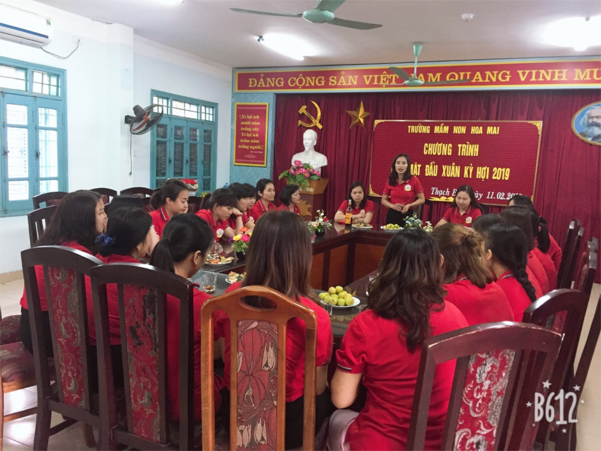 Trong buổi gặp mặt, đ/c Trần Thị Nghĩa Quỳnh – Hiệu trưởng cảm ơn những đóng góp của tập thể cán bộ, giáo viên, nhân viên vào thành tích của nhà trường trong năm vừa qua và gửi đến lời chúc mừng năm mới sức khỏe - bình an - thành công tới toàn cán bộ, giáo viên, nhân viên nhà trường. Bên cạnh đó, Hiệu trưởng nhấn mạnh một số nhiệm vụ trọng tâm mà Nhà trường tiếp tục phải thực hiện trong năm 2019.