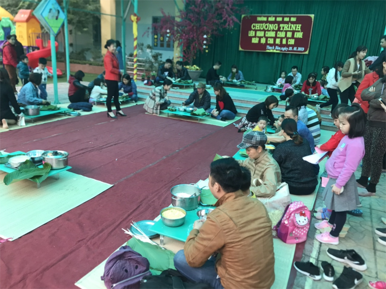 Bố mẹ các bé cũng rất nhiệt tình với các hoạt động của Ngày hội cha mẹ và con. Đây là sự phối hợp rất tuyệt vời giữa gia đình và trường trong công tác chăm sóc nuôi dưỡng giáo dục trẻ.