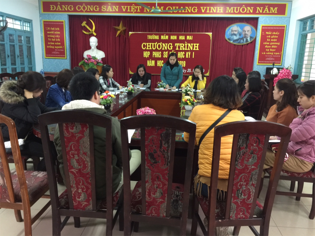 Tham dự cuộc họp có Ban giám hiệu trường mầm non Hoa Mai, Ban đại diện cha mẹ học sinh trường và Ban phụ huynh của các lớp.