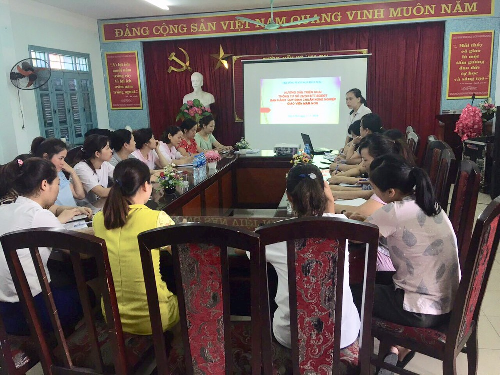 Tại buổi tập huấn- sinh hoạt chuyên môn các đ/c giáo viên đã nắm được nội dung cơ bản của Thông tư về đánh giá chuẩn nghề nghiệp giáo viên mầm non, biết tập hợp và sử dụng minh chứng trong đánh giá xếp loại kết quả đánh giá, chu trình đánh giá chuẩn nghề nghiệp giáo viên mầm non...
