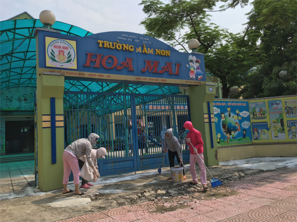 Ngày 24/8/2019 trường mầm non Hoa Mai tổ chức tổng vệ sinh môi trường phòng chống dịch bệnh sốt xuất huyết trong nhà trường. 100% CBGVNV đã tham gia tổng vệ sinh bên trong, bên ngoài và các khu vực xung quanh trường, không để các vật dụng chứa nước để diệt muỗi, bọ gậy, loằng quăng.... phòng chống dịch sốt xuất huyết. Đặc biệt trong đợt ra quân lần này nhà trường đã triển khai thực hiện phòng chống rác thải nhựa, hạn chế sử dụng túi nilong để tạo nên một môi trường học tập và vui chơi xanh sạch đẹp trong nhà trường.