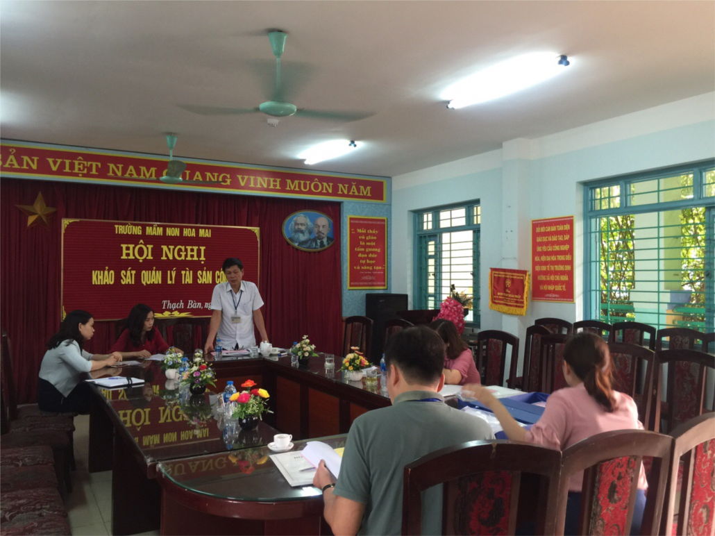 Sáng ngày 22/3/2019, thực hiện nhiệm vụ của HĐND quận Long Biên, HĐND phường Thạch Bàn về khảo sát tình hình quản lý sử dụng tài sản công trong trường Mầm non Hoa Mai. Đoàn khảo sát bao gồm các đồng chí: