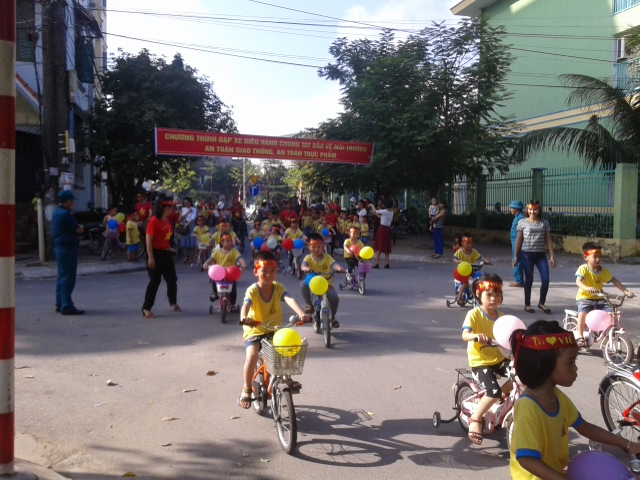 Với trẻ mầm non hoạt động tuyên truyền hiệu quả nhất chính là trẻ học bằng chơi, nhà trường đã tổ chức cho các bé khối mẫu giáo lớn tham gia Chương trình diễu hành đạp xe - Chung tay bảo vệ môi trường- an toàn giao thông an toàn thực phẩm. Qua đó tuyên truyền phụ huynh học sinh về ngày pháp luật nước cộng hòa xã hội chủ nghĩa Việt Nam.