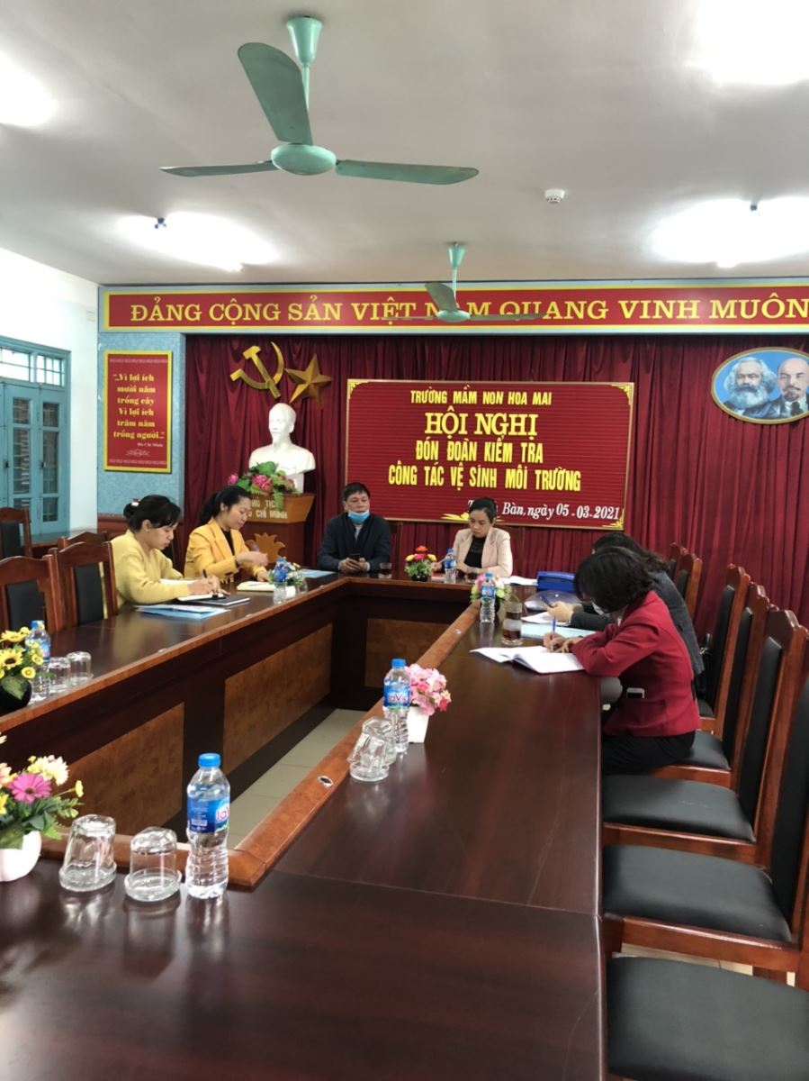 Đúng 14h30 Đoàn kiểm tra bắt đầu làm việc. Đoàn đã nghe Đ/c Trần Thị Nghĩa Quỳnh báo cáo kết quả đạt được về việc thực hiện vệ sinh môi trường của nhà trường trong năm học 2020- 2021. Qua đó Đ/c cũng nêu lên những khó khăn, vướng mắc mà nhà trường gặp phải trong những năm học tới và có ý kiến đề xuất tham mưu với Đoàn kiểm tra để xây dựng nhà trường ngày một phát triển.