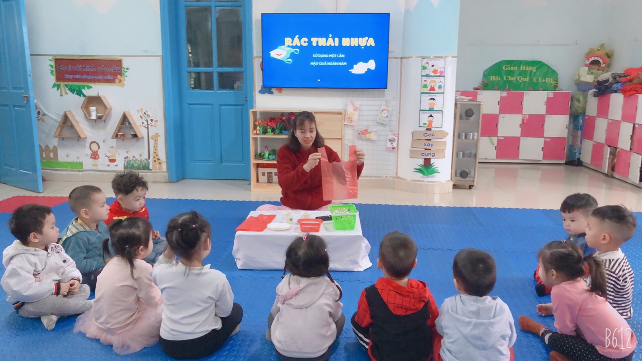 Cô đang cung cấp cho trẻ tác hại của rác thải nhựa với môi trường