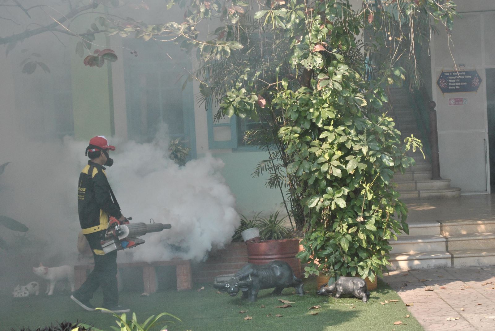 Công tác chuẩn bị đã được nhà trường hiện nghiêm túc như: Thông báo tới phụ huynh đón con sớm, các cô giáo và nhân viên tiến hành kéo các giá để đồ chơi ra giữa phòng, che phủ đồ đạc, các thiết bị, đồ dùng đồ chơi, bằng các tấm bạt sạch nhằm tránh thuốc diệt muỗi côn trùng. Giám sát việc phun thuốc diệt côn trùng, đảm bảo tất cả các phòng học, các khu vực của trường đều được phun thuốc.